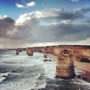 themselves are beautiful. Especially at sunset, when the colours change and the sun sinks in the sea … Be sure to stay a bit till after the sunset, to see some little creatures popping out of the water: this place is a breading place for little penguins (another good spot is the London Bridge). They are the only penguins breeding on the Australian mainland. And yes, they are very small! The Apostles are beautiful, but just before there is a must-see: the Gibsons Steps. Only when you are at the beach, you realize how high the cliffs are (70 meters) and how rough the water can be (swimming is prohibited). Less tourists come here (or don’t go down the beach), just lovely! Just a few kilometres behind the Apostles the next natural wonder awaits you … (and it doesn’t stop here) Loch Ard Gorge. You can walk on the beach here if you want, or watch the gorge from a viewing platform.