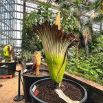 Amorphophallus titanum, commonly known as the Titan arum or the Corpse flower, is a fascinating and rare flowering plant native to the rainforests of Sumatra, Indonesia. It is famous for producing the largest unbranched inflorescence in the world and emits a foul odor that resembles rotting flesh when it blooms, giving it the name “Corpse flower.”